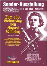 Am Weihnachtsmarkt-Freitag von 18:00 bis 20:00 Uhr und am Weihnachtsmarkt-Samstag von 16:00 bis 20:00 Uhr, aber auch an zahlreichen Sonntagen ab Ausstellungseröffnung (2. November 2025) bis April 2026 ist die Ausstellung "Zum 180. Geburtstag von August Wilhelmj" im Usinger Stadtmuseum zu sehen.