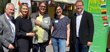 v.l.n.r.: Viola Krieger vom Regionalmanagement, Oliver Lorenz, Vorstandsmitglied Verein Regionalentwicklung Hoher Taunus, Sonja Dimter vom Regionalmanagement, Landrat Ulrich Krebs, Thorsten Schorr, Erster Kreisbeigeordneter des Hochtaunuskreises und Julia Maischak-Dyck, Fachbereichsleitung Amt für den Ländlichen Raum.