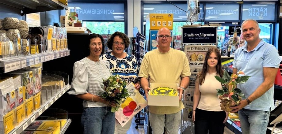 Ganz Usingen freut sich über die Eröffnung der neuen DHL-Partnerfiliale, so Bürgermeister Steffen Wernard bei seinem Begrüßungsbesuch bei Käptn Kiosk im Einkaufsgebiet Am Riedborn.