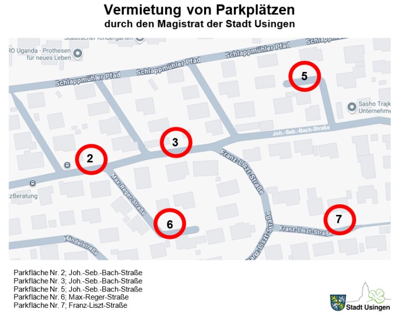 Der Magistrat der Stadt Usingen vermietet städtische Parkplätze im Bereich des Stadtgebietes zur privaten Nutzung.